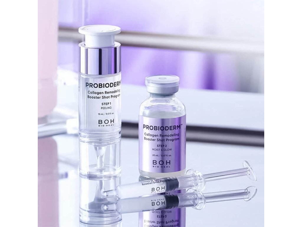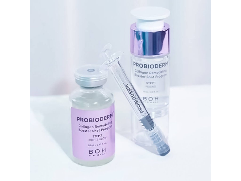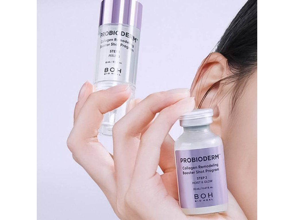Dvoufázový program proti stárnutí BIOHEAL BOH Probioderm Collagen Remodeling Booster Shot Program vyhlazuje texturu pleti, zvyšuje její pevnost a elasticitu, snižuje hloubku vrásek a rozšířených pórů.