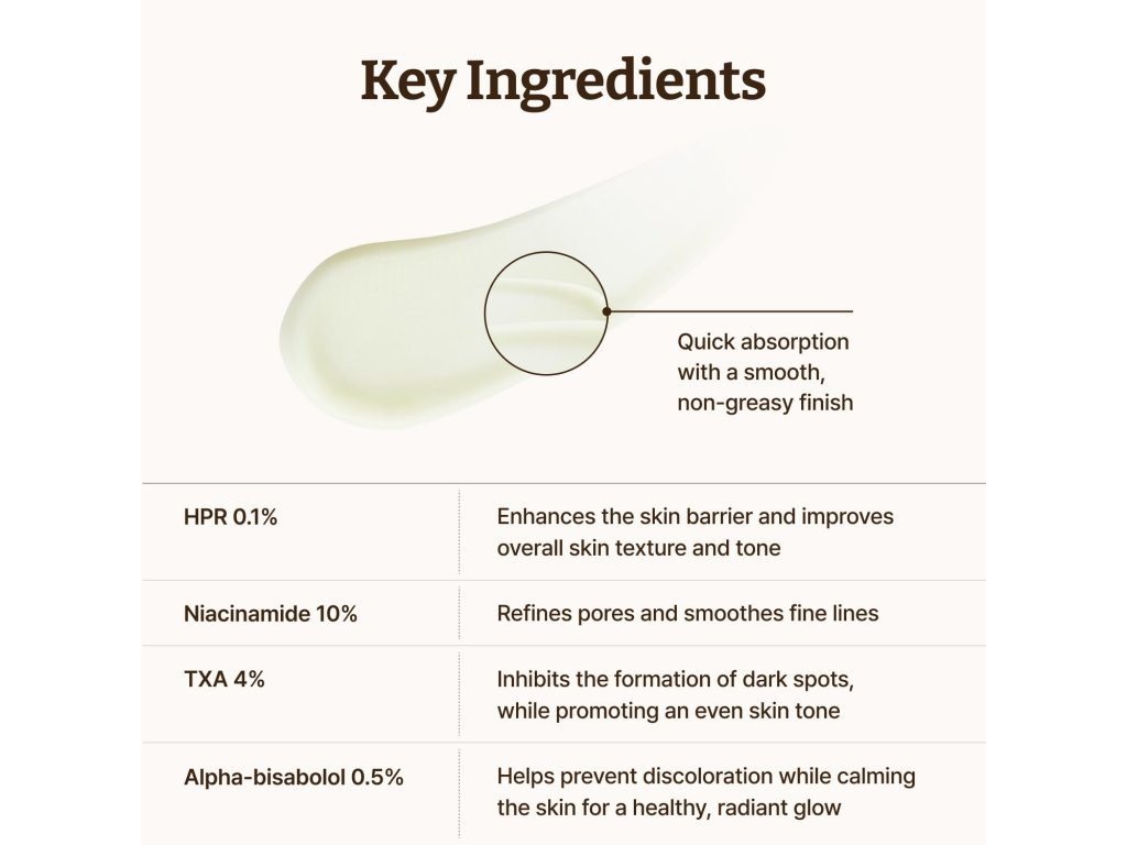 - Kyselina tranexamová 4 % (TXA) – cílí na nerovnoměrný tón a viditelnost pigmentových skvrn.