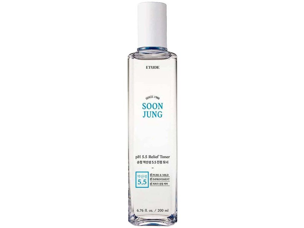 ETUDE SoonJung pH 5.5 Relief Toner je zklidňující toner s chladivým efektem, který je z 97 % tvořen složkami přírodního původu. Pomáhá zmírnit zarudnutí a podráždění, zklidňuje a změkčuje suchou, citlivou i poškozenou pleť a pomáhá odstranit pnutí a šupinatění.