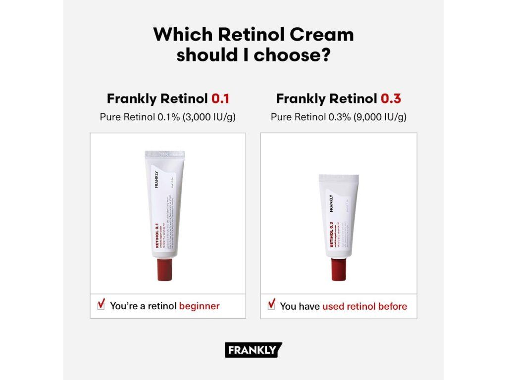 FRANKLY Retinol 0.3% Cream je intenzivní noční krém s 0,3 % čistého retinolu, který podporuje obnovu pleti, vyhlazuje vrásky a zlepšuje elasticitu pokožky. Silnější koncentrace retinolu je vhodná pro pokročilejší uživatele, kteří chtějí výraznější anti-aging efekt.