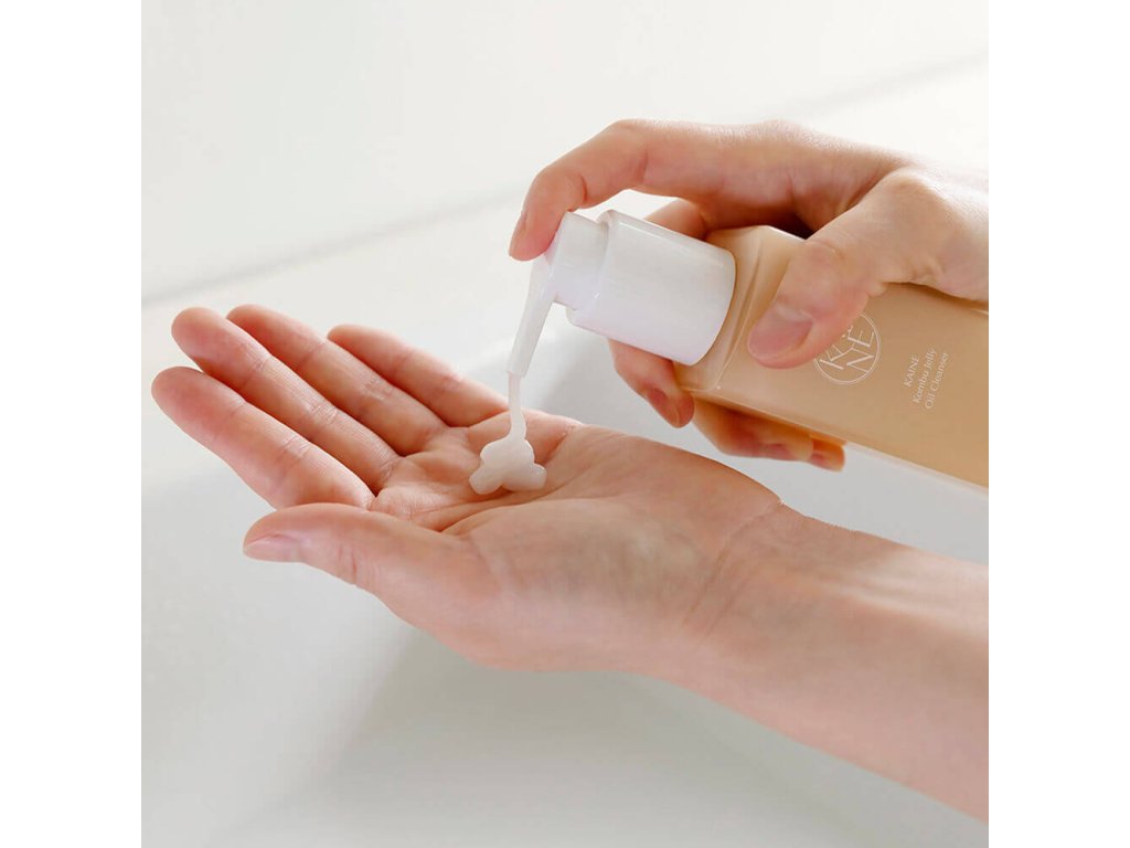Hydrofilní olej-gel pro citlivou pleť Kaine Kombu Jelly Oil Cleanser odstraňuje odolný make-up, tonální a sluneční přípravky a čistí pleť tím, že absorbuje přebytečný maz a nečistoty z pórů.