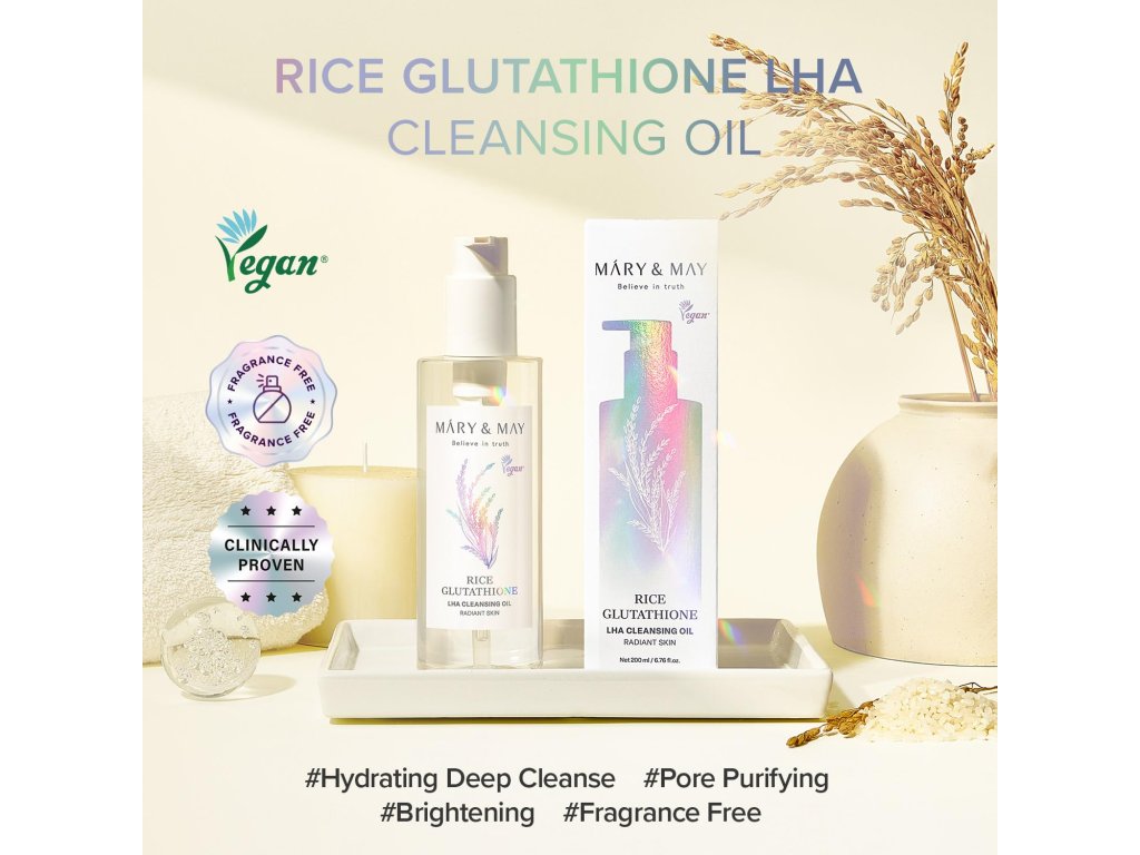 Mary & May – Rice Glutathione LHA Cleansing Oil – Čisticí olej s rýží, glutathionem a LHA – 200 ml