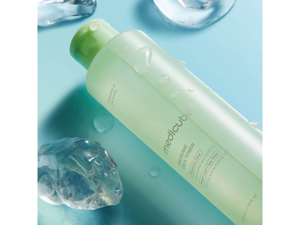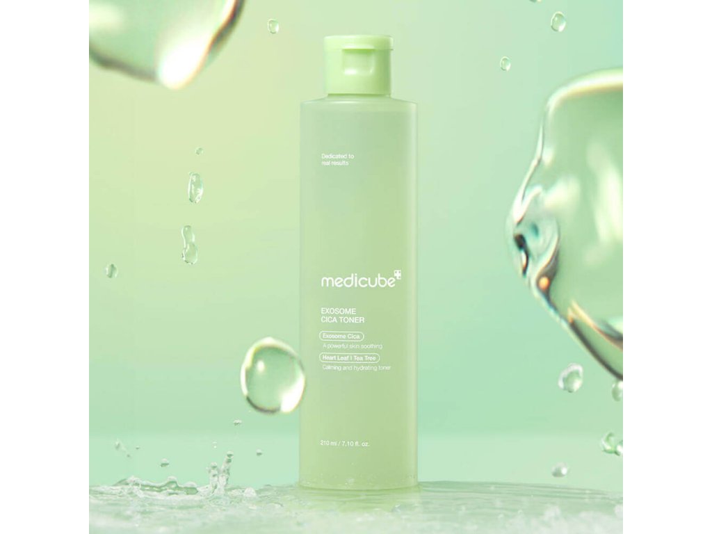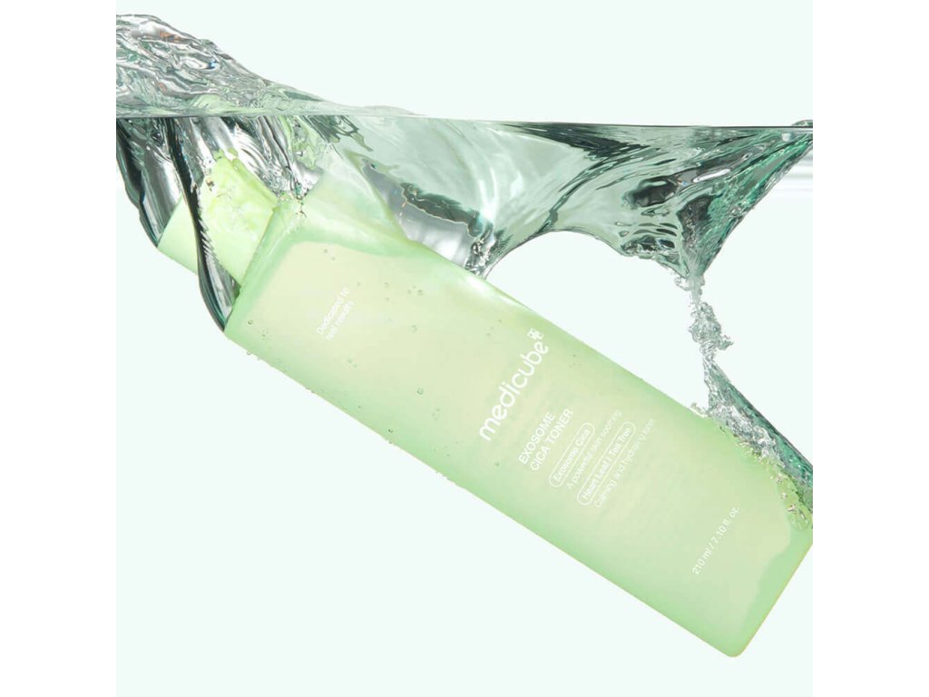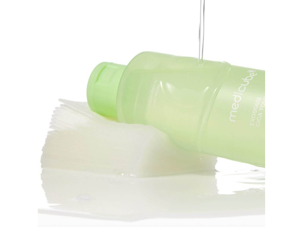Zklidňující toner s centellou Medicube Exosome Cica Toner ochlazuje a zmírňuje svědění, zklidňuje podráždění a zarudnutí. Reguluje činnost mazových žláz, stahuje póry a zabraňuje tvorbě komedonů. Má protizánětlivé vlastnosti a snižuje riziko vzniku akné.