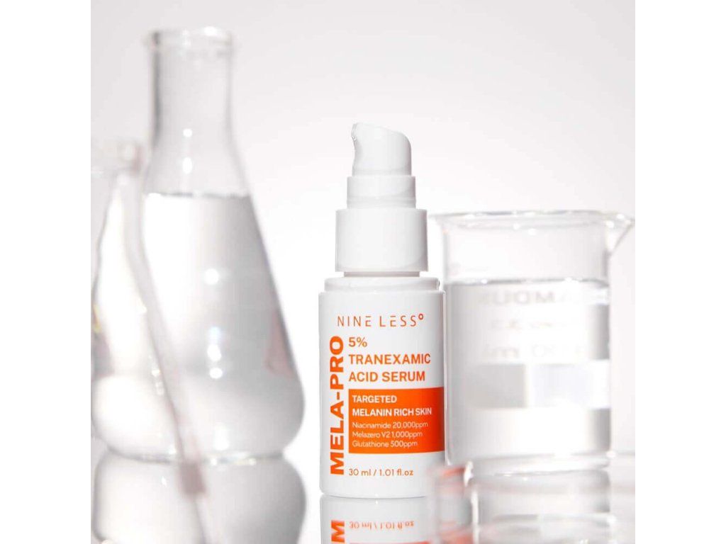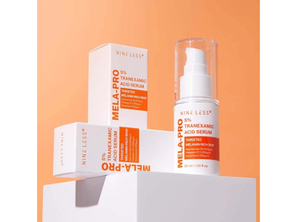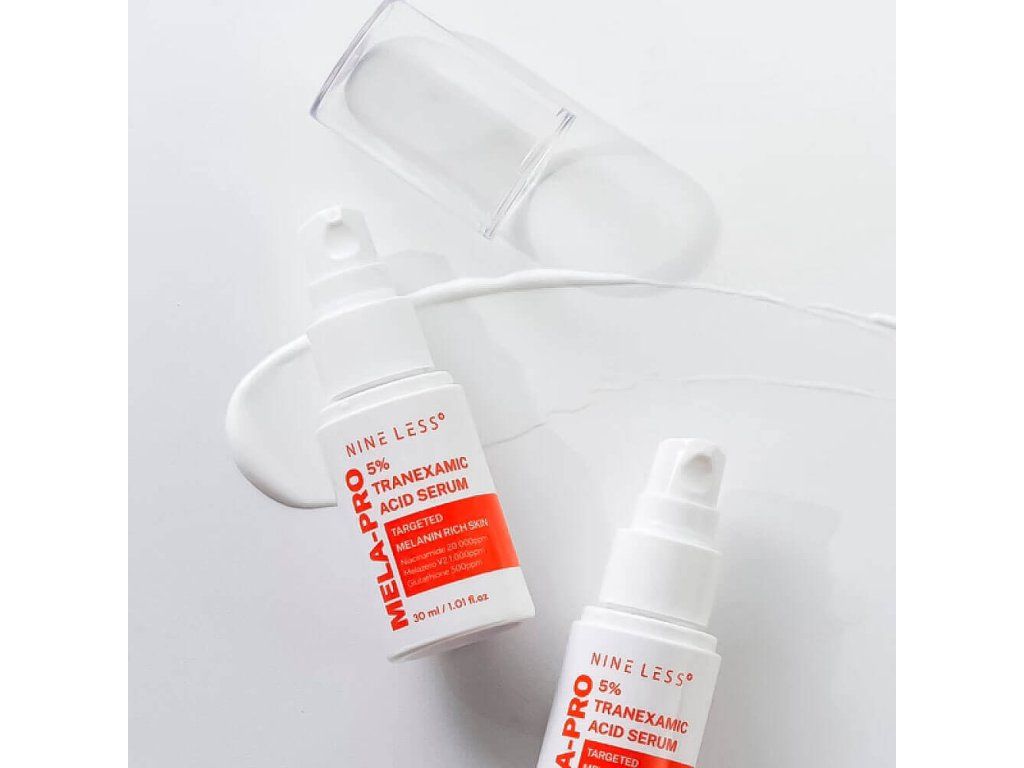 Rozjasňující sérum s 5% kyselinou tranexamovou NINE LESS MELA-PRO 5% Tranexamic Acid Serum pomáhá sjednotit tón pleti, působí antioxidačně a chrání pokožku před volnými radikály. Pomáhá zesvětlit pigmentaci a stopy po akné, tonizuje a hydratuje pleť.