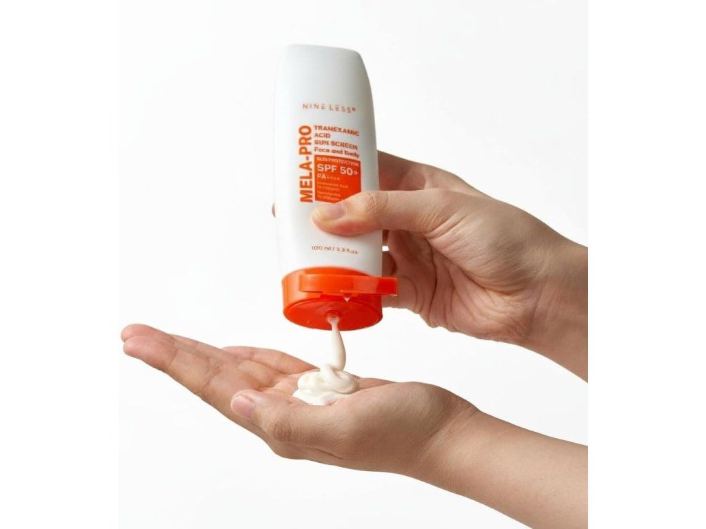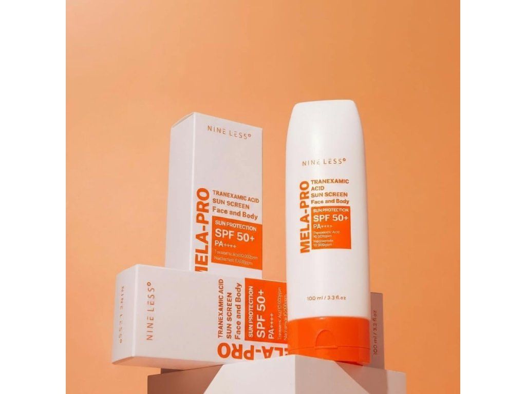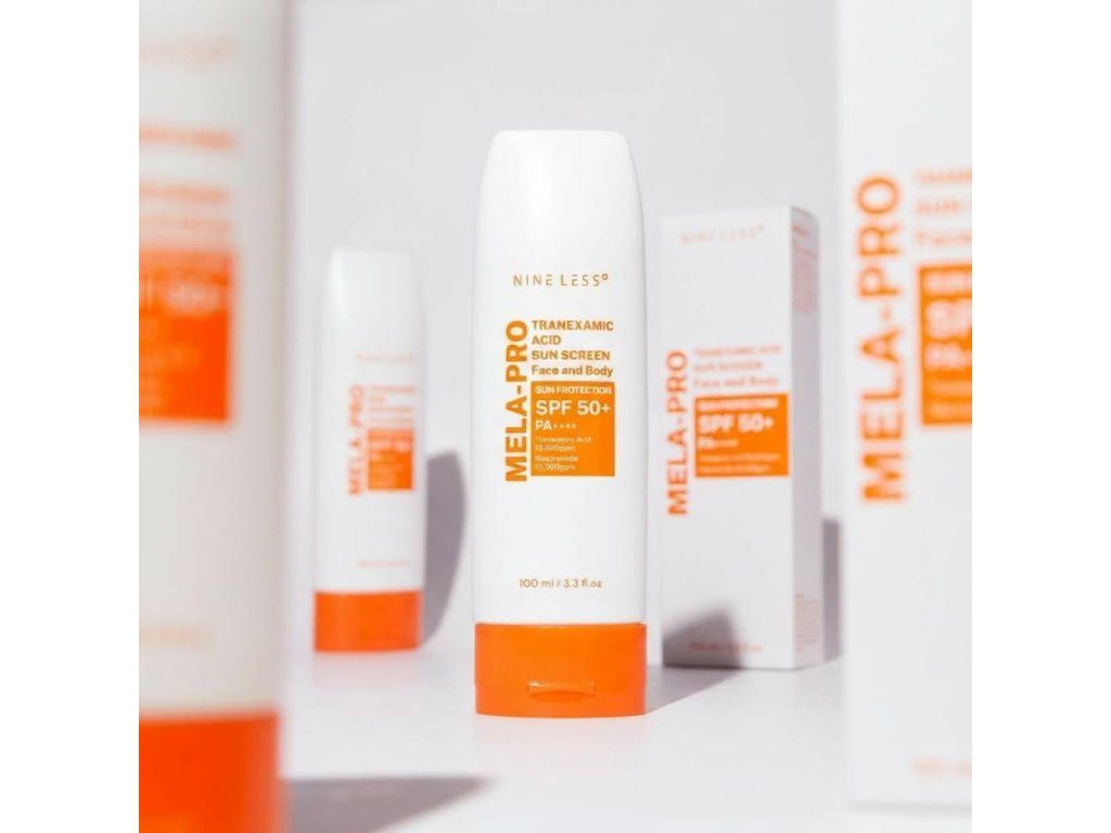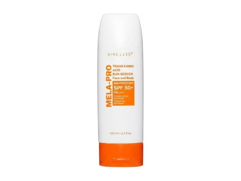 NINE LESS MELA-PRO Tranexamic Acid Sun Screen SPF50+ PA++++ je ochranný opalovací krém, který pomáhá chránit pleť před UV zářením a zároveň přispívá k rozjasnění a sjednocení tónu pleti. Lehká krémová textura se snadno roztírá, nezanechává výrazný bílý film a je vhodná pro každodenní použití.