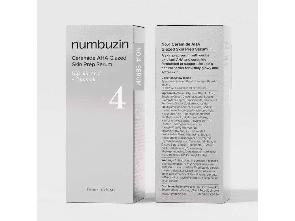 Numbuzin – No.4 Ceramide AHA Glazed Skin Prep Serum – Obnovující sérum s ceramidy a AHA kyselinami – 30 ml