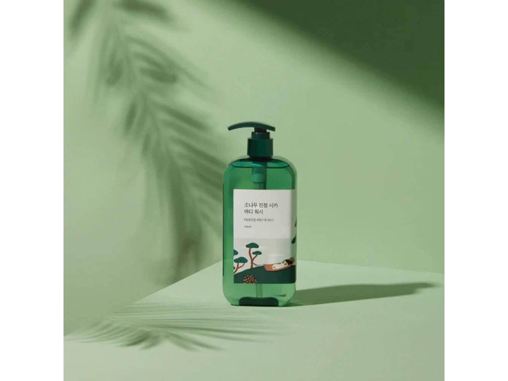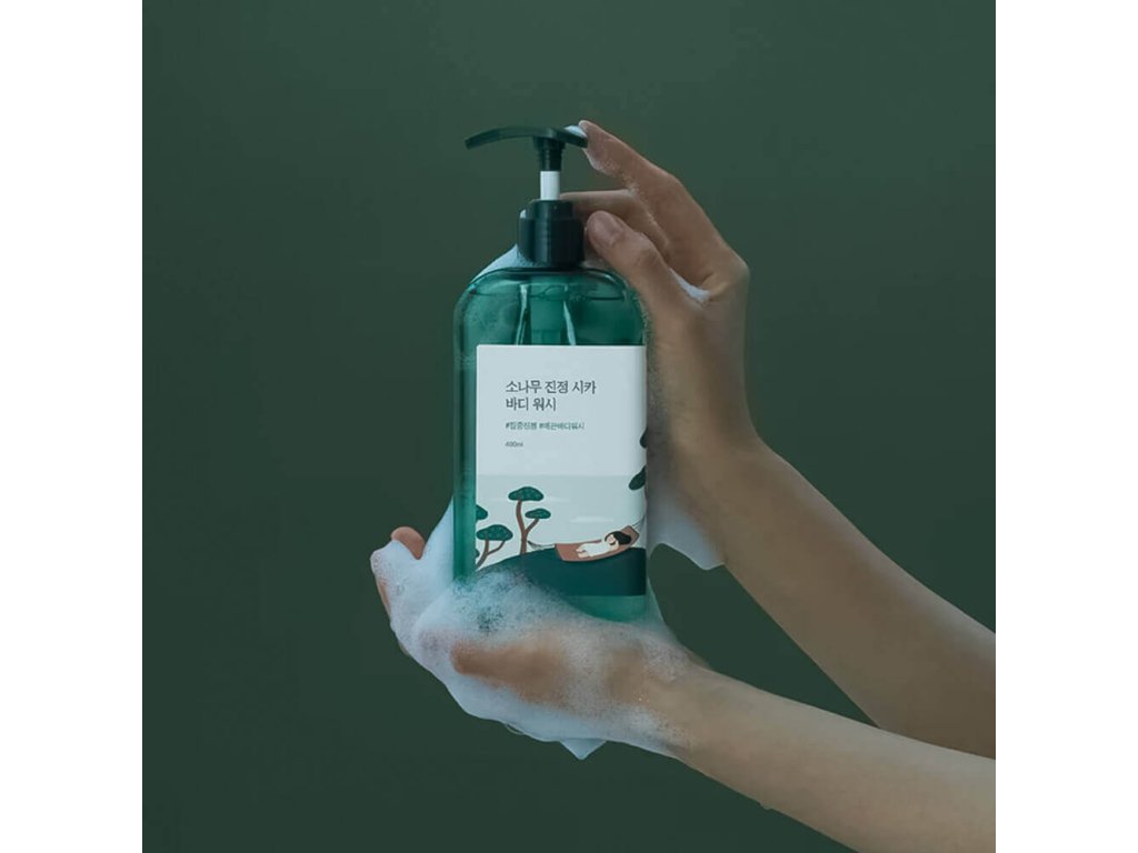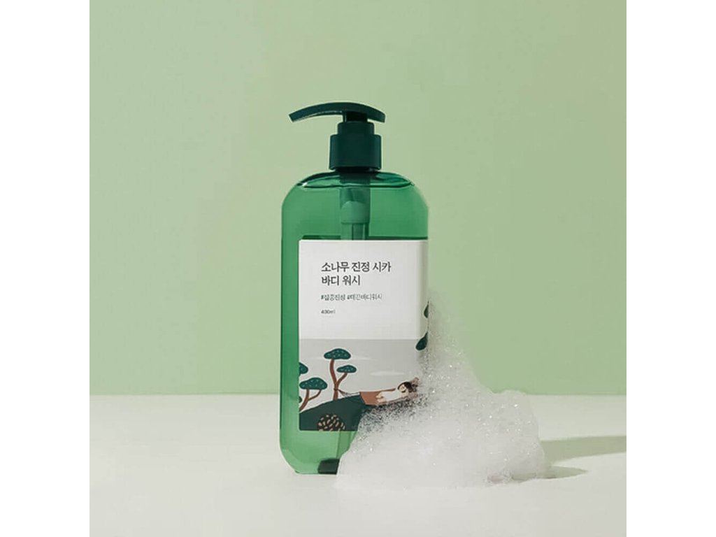 Sprchový gel Round Lab Pine Calming Cica Body Wash účinně odstraňuje pot, prach, kožní maz i odumřelé kožní buňky, zanechává pokožku svěží a čistou, aniž by ji vysušoval. Pomáhá zlepšit stav pokožky se sklonem k akné a změkčuje zhrublá místa. pH produktu se pohybuje v rozmezí přibližně 4,0–6,0.