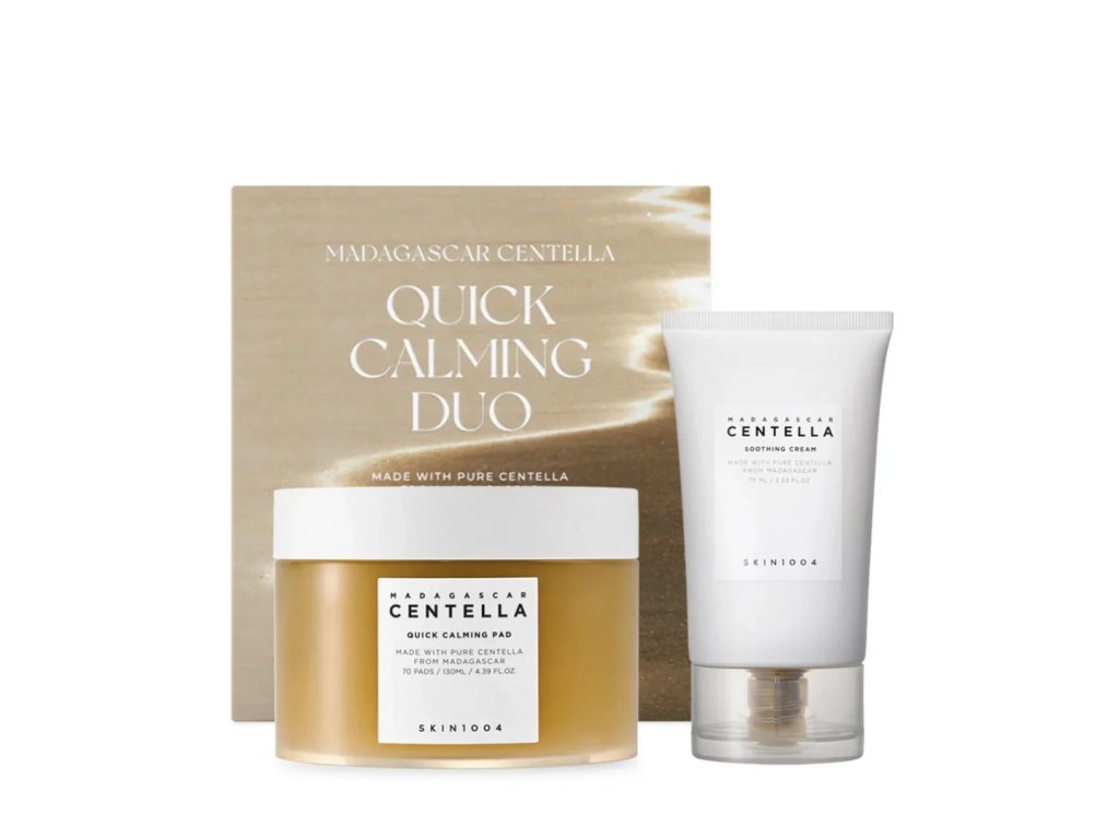 SKIN1004 Madagascar Centella Quick Calming Duo je jednoduchá a účinná sada pro každodenní péči, která spojuje tonizační tampony a zklidňující krém. Poskytuje okamžité zklidnění, lehkou hydrataci a posílení kožní bariéry. Ideální pro ranní rutinu, přípravu pokožky na make-up nebo rychlou regeneraci během dne. Pokožka zůstává svěží, jemná a zdravě vypadající.