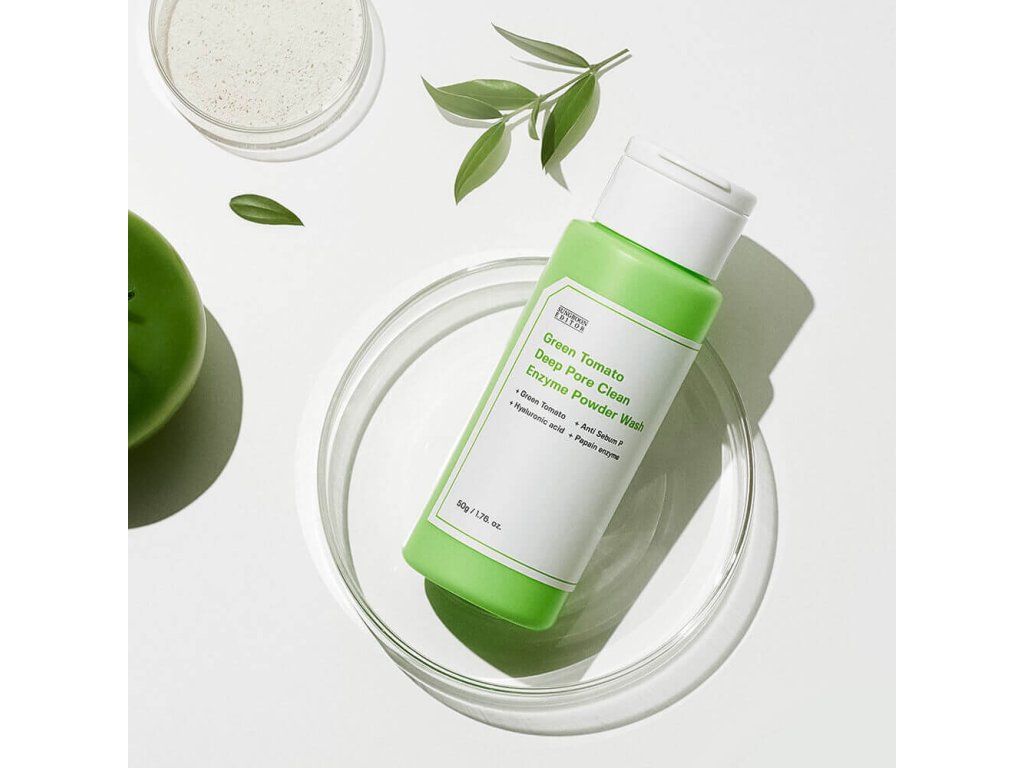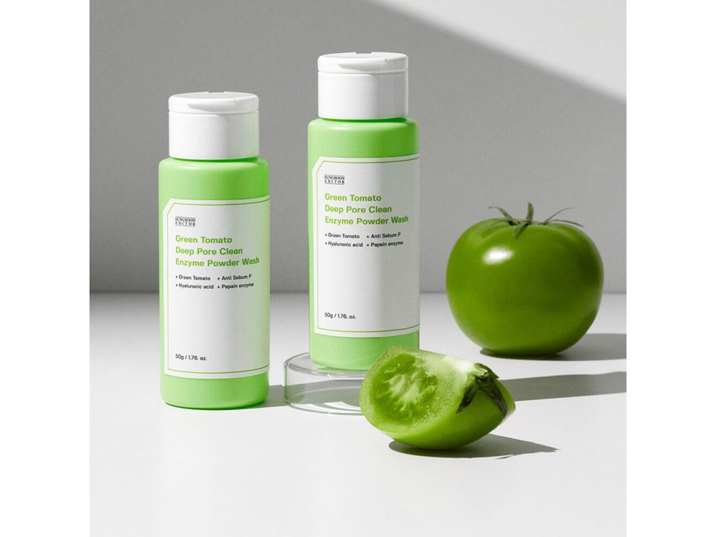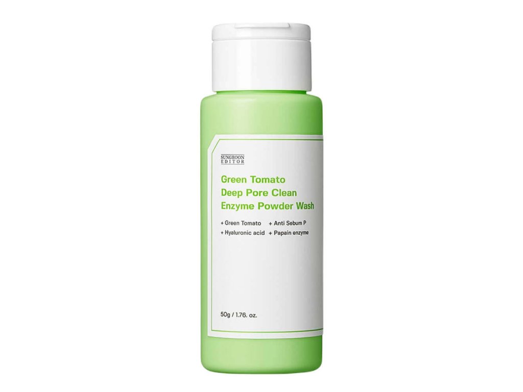 Enzymový pudr Sungboon Editor Green Tomato Deep Pore Clean Enzyme Powder Wash odstraňuje nečistoty, zbytky make-upu, odumřelé kožní buňky a přebytečný kožní maz, aniž by způsoboval suchost nebo nepříjemné pnutí.