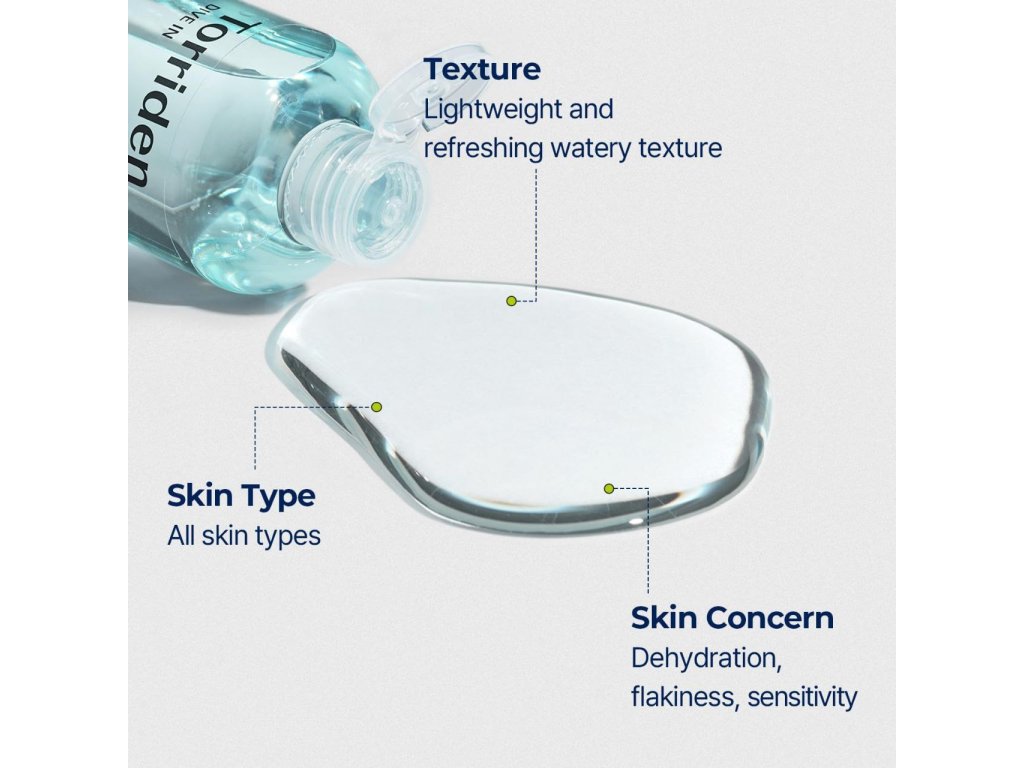 Hydratační toner s kyselinou hyaluronovou Torriden DIVE IN Low Molecular Hyaluronic Acid bohatě nasycuje epidermální buňky vlhkostí a chrání před dehydratací. Pomáhá co nejdříve obnovit optimální úroveň hydratace a zabraňuje vzniku známek dehydratace.