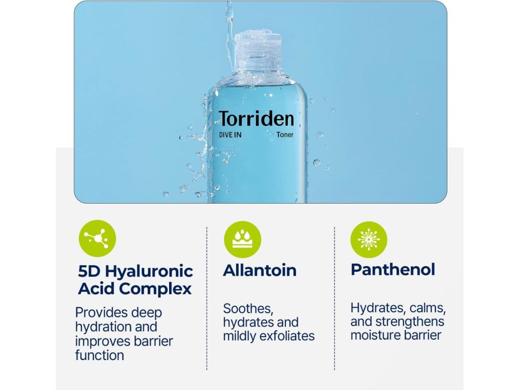 Torriden je korejská kosmetika vyvinutá s využitím vědeckých formulí a ekologických přístupů. Produkty značky obsahují hydrolyzovaný hyaluronát sodný a hyaluronovou kyselinu pro hydrataci pleti, stejně jako ceramidy a panthenol pro obnovu kožní bariéry.
