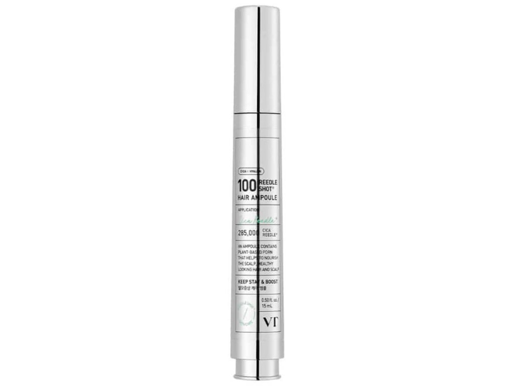 Ampule VT Cosmetics Reedle Shot Hair Ampoule 100dL jemně exfoliuje a stimuluje buněčnou obnovu, díky čemuž posiluje vlasy u kořínků a podporuje jejich růst.
