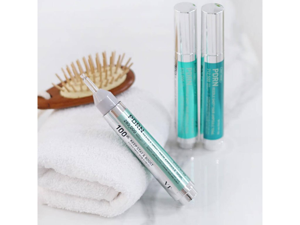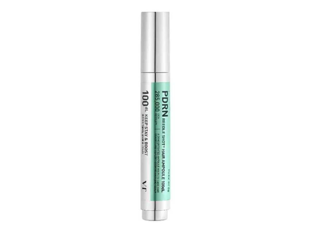 Ampule s mikrojehličkami a PDRN VT Cosmetics PDRN Reedle Shot Hair Ampoule 100dL stimuluje mikrocirkulaci a posiluje vlasové cibulky, aktivuje růst zdravých a silných vlasů a zabraňuje jejich vypadávání. Zpevňuje vlasy a navrací jim objem u kořínků, zklidňuje podráždění pokožky hlavy.