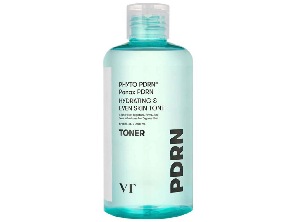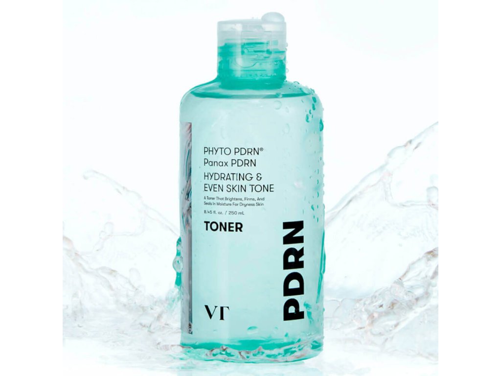 Hydratační toner VT Cosmetics PDRN Toner obnovuje, zklidňuje a změkčuje pleť, stimuluje buněčnou regeneraci a podporuje pevnost i elasticitu.